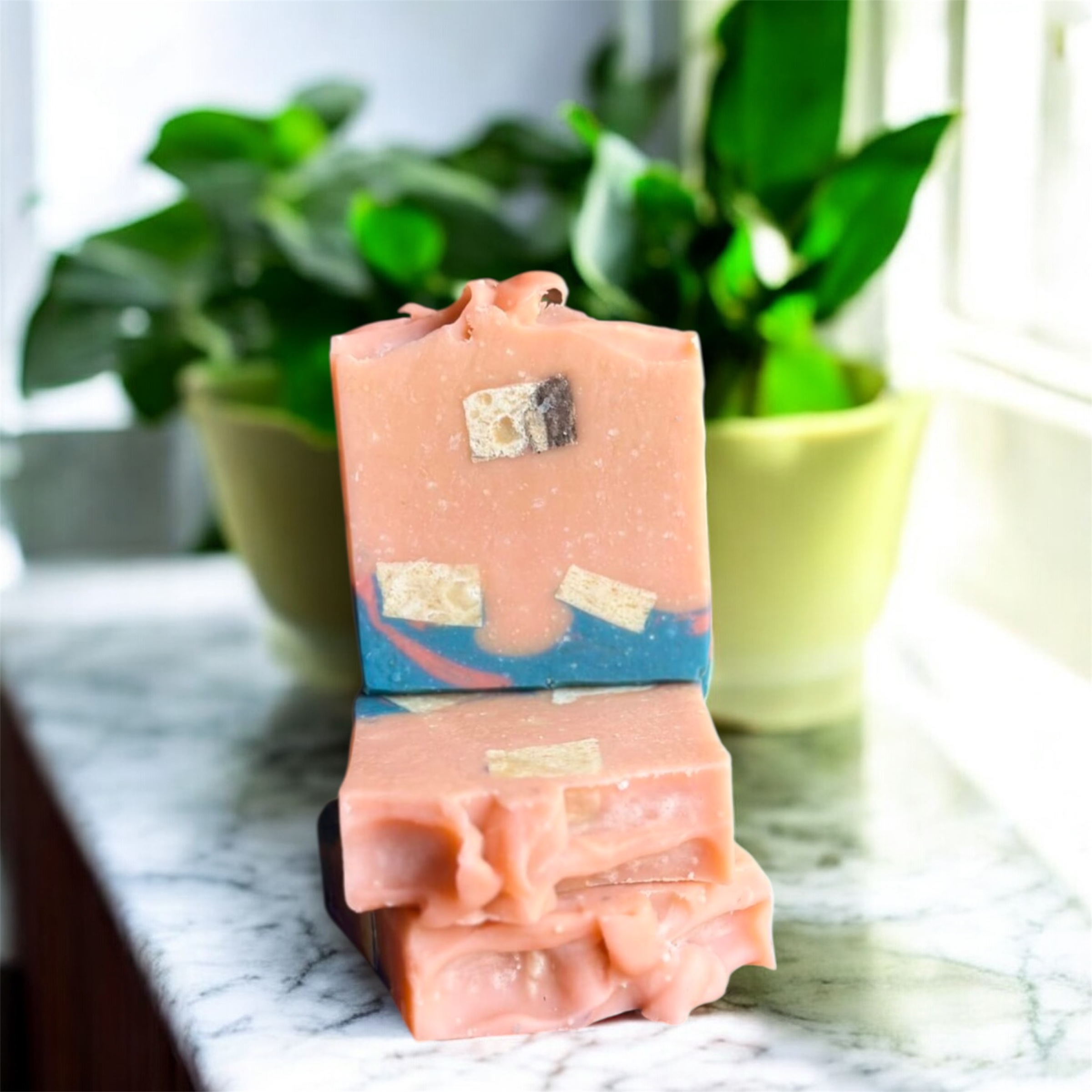 Our soaps are made the cold process method and the saponification process can be influenced by temperature and humidity, which makes all of our soaps look a little bit different. This is one of the unique characteristics of truly handmade product.