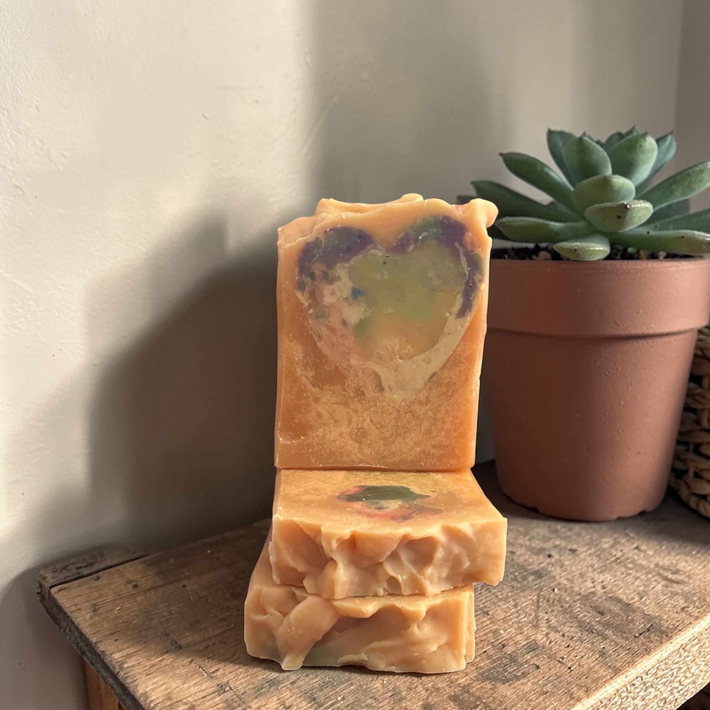 Goat milk makes up 40% of the ingredients in our soap, This high milk content makes for a softer soap, so don’t be surprised if our soap doesn’t last as long in the shower as a commercially made product.